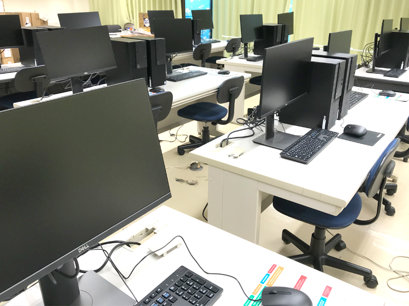 ICT系の委託訓練の実施が多く、コンピュータ機器に関してはハイスペックなものを用意しています。サーバー構築やWebアプリケーションの作成に適しています。